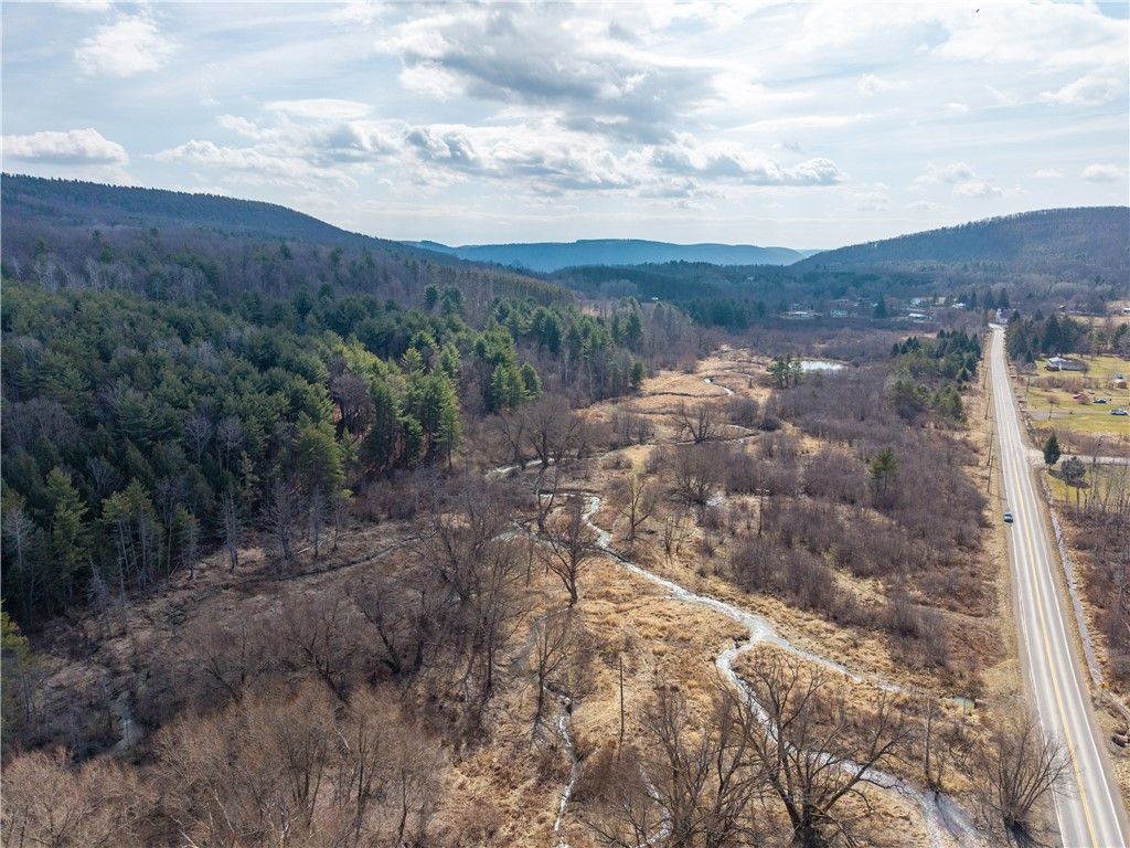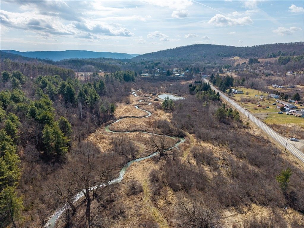Endless opportunities await on this 46-acre parcel just outside Bath, NY-just 10 minutes from Hammondsport and beautiful Keuka Lake. Located in the heart of the Finger Lakes and close to multiple lakes, the area offers year-round recreation including fishing, hiking, hunting, and exploring. The land features a rare mix of natural amenities, with Mitchellsville Creek running through the property, a large pond, partially wooded acreage, and a level open area well-suited for a seasonal cabin or full-time residence. With over 2,000 feet of road frontage on two paved roads, you'll enjoy excellent access and flexibility no matter where you choose to build or explore. Abundant wildlife throughout makes this an ideal setting for hunters, outdoor enthusiasts, or anyone seeking a private getaway with room to roam. Listing agent is related to the seller.