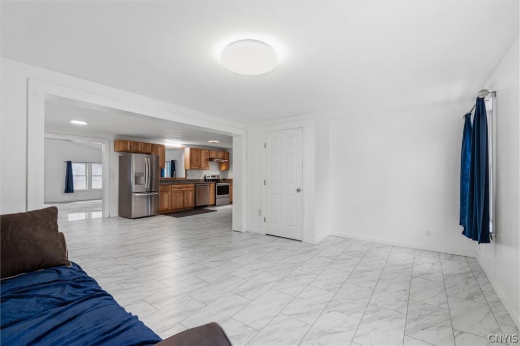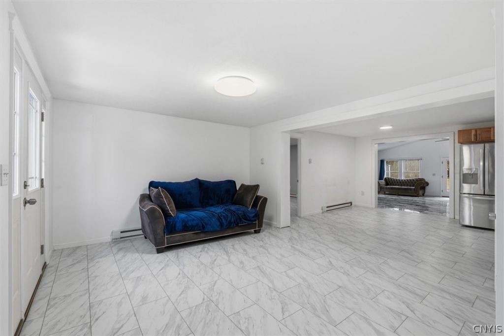 Welcome to 148 North Street in Cleveland, NY - a beautifully updated ranch-style home offering space, quality craftsmanship, and peaceful country living on 1.65 acres. This spacious 1,900-square-foot home features two bedrooms and two full bathrooms, providing comfortable single-level living. The home has been thoughtfully upgraded with a brand-new metal roof and brand-new vinyl siding, giving it long-lasting durability and modern curb appeal. Inside, the kitchen is designed to impress with granite countertops, all new stainless steel appliances including washer and dryer, and stunning Amish-made cabinetry that offers both beauty and exceptional craftsmanship. A new stunning addition with vaulted ceilings, two large drop fans, and beautiful tile floors and brand new vinyl windows that allow for an abundance of natural light to shine in makes way for entertaining at it finest The home operates fully on electric and is connected to public water for added convenience. Outside, you'll find an extra-large stone driveway providing plenty of parking and easy access to the impressive detached pole barn. The large barn includes a 10-foot automatic garage door, making it perfect for storing vehicles, equipment, recreational toys, or creating a workshop space. Set on a generous sized lot, this property offers room to enjoy the outdoors while still being conveniently located in the village