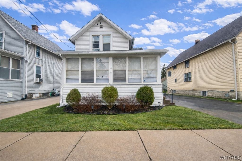 This spacious 4-bedroom, 1.5 bath home offers a versatile layout featuring an eat-in kitchen, formal dining room, family room, living room, and convenient first-floor laundry. Additional features include an enclosed front porch, basement, and a 2.5-car garage, providing plenty of space for storage, hobbies, or additional living areas. The home offers hardwood floors, built-in storage throughout, ceiling fans, and a wall A/C unit, along with boiler heat (approx. 2001). Exterior includes a newer architectural roof and maintenance-free siding, while the home also features an electrical panel with circuit breakers and includes appliances such as the refrigerator, gas stove (with electric hookup available), washer, and dryer. Significant updates within the last five years add even more value, including a kitchen remodel, new half bath, fresh interior paint, a built-in wall unit with fireplace, grounded electrical upgrades, new water heater, new dining room flooring, sump pump with bubbler system, and newer fencing creating a private yard. Conveniently located in North Tonawanda, the home is close to many local amenities including parks along the Erie Canal, North Tonawanda Gateway Harbor, shopping and restaurants on Niagara Falls Blvd and Meadow Drive, schools, and easy access to Niagara Falls, Amherst, and Buffalo. Enjoy nearby canal-side events, walking and biking trails, local coffee shops, and waterfront dining while being just minutes from everyday conveniences. With its generous space, recent upgrades, and convenient location, 15 Linwood Ave offers comfort, functionality, and excellent value.