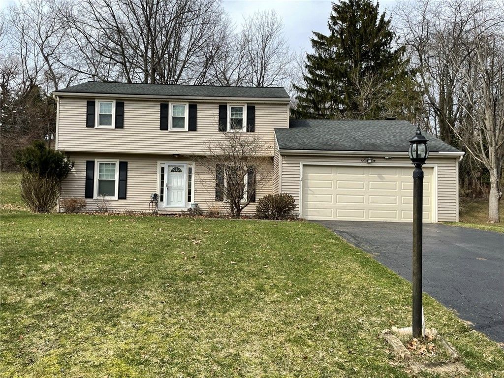 This well-maintained home is located close by too many amenities to list. Showcasing updates including newer windows, siding, gutters, garage door, appliances, and glass block windows, this home is move-in ready and awaiting your finishing touches. Featuring 4 bedrooms and 2 1/2 baths, with an updated primary suite including a bath with walk-in shower, and a main bath with a jetted tub, this home also boasts main floor laundry for added convenience. The family room with wood burning fireplace has sliders that lead to the ample rear yard and patio area. The basement is partially finished and includes flex areas for future improvement, as well as a wet bar, work room, or office. A 2-car garage with garage door opener completes this offering. Backing to forever wild, this home has an electric dog fence & security system. Energy is supplied by Fairport Electric. Delayed negotiations March 30th at 5 PM. Please allow 24 hours for response.