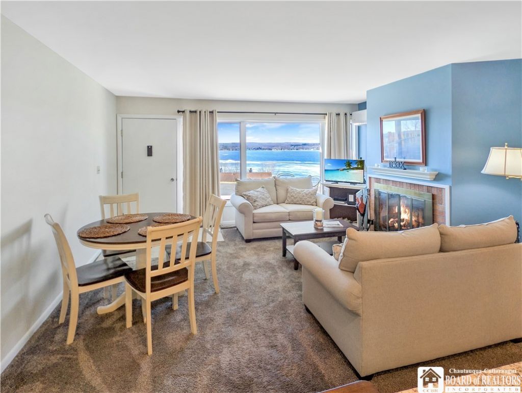 Enjoy effortless lake living in this beautifully located 2-bedroom, 1 full and 1 half bath first-floor walkout condo in desirable Chautauqua Lake Estates. Perfectly positioned within the community, this unit offers the ideal balance of convenience and breathtaking scenery. Step outside onto your private patio and take in the spectacular views of Chautauqua Lake, the perfect setting for morning coffee, relaxing evenings, or entertaining friends and family. Inside, the condo offers comfortable single-level living with a functional layout, two well-sized bedrooms, and both a full and half bath for added convenience. Enjoy lake views from the ample living room, kitchen and primary bedroom. The first-floor walkout design provides easy access and seamless indoor-outdoor living. The location within the association is exceptional. The unit is centrally positioned between the community pool and the dock area, making it easy to enjoy all the amenities. Residents also benefit from approximately 1,200 feet of shared lake frontage, providing plenty of space for boating, swimming, and lakeside relaxation as well as tennis courts and playground. Recent upgrades include 2019 kitchen remodel, 2025 installation of a mini-split ac/heat system, new carpeting and paint in 2025. Property being offered mostly furnished and move-in ready with furnishing purchased in 2024, some personal items excluded. Whether you're looking for a year-round residence, or vacation retreat, this condo offers an outstanding chance to enjoy the best of lake life in one of the area's most sought-after communities.