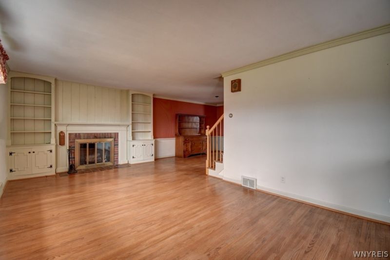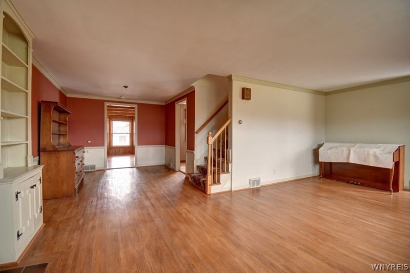 Solid brick and siding two-story on a tree-lined block between Kerr and Puritan right across from Edison Elementary - 1,494 square feet of honest, well-built 1955 construction with hardwood floors, a wood-burning fireplace, and room to make it your own. This is not a cookie-cutter flip. It's a well maintained one owner house in one of Tonawanda's most established neighborhoods, backed by the Kenmore-Tonawanda school district and priced to reward the buyer who sees what's here. The main level opens with a generous 12x21 living room anchored by the fireplace and built shelving, flowing naturally into a formal dining room - the kind of dedicated space that's hard to find in this price range. The family room addition adds flexible living space for a home office, playroom, or den, while the eat-in kitchen offers a practical layout with a dishwasher, disposal, refrigerator, and freestanding oven/range all included. Hardwood flooring throughout the home keep things clean and low-maintenance. Upstairs, three bedrooms provide comfortable proportions across the board. The primary bedroom measures a generous 21x10 with walk in closet, and two additional bedrooms at 8x15 and 10x15 offer real usable space - no cramped afterthoughts. A full bath serves the second floor, with a convenient half bath on the main level for guests. The full basement delivers laundry hookups, solid storage, and future finishing potential. Outside, a partially fenced yard with a patio creates a private outdoor living area, and the detached two-car garage handles parking and gear, and workshop space with room to spare. Central air conditioning, gas-forced air heat, public water and sewer, sump pump with back up check all the boxes. Conventional, FHA, VA, and cash financing all welcome. Schedule your showing before the market catches up to the price. Showings start 3/17 and a open house Saturday 3/21 1-3pm with offers due 3/24 at noon.