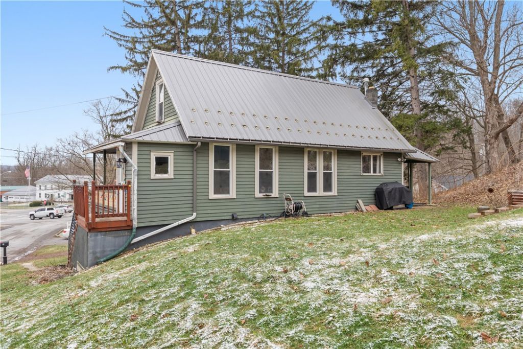 Don't miss this rare hillside opportunity in the desirable village of Wyoming! Here you will find a cape style home, situated on a large lot with space to build a garage, or use the two sheds that could potentially be a workshop. There is a charming front and back porch, overlooking the peaceful hillside. There are newer windows, hot water tank, metal roof and boiler. There is one bedroom downstairs, and the upstairs two feature built in dressers that add character and functionality. The basement is dry and also offers additional storage space, and a walk out. With land, views, updates, and room to grow, this unique property offers endless possibilities.