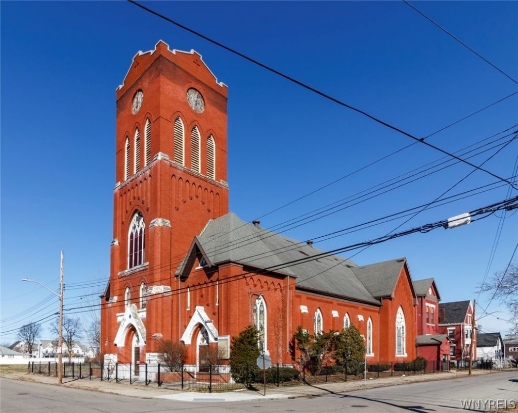 Offer deadline for 300 & 308 Adams St. and associated lots is Monday, March 23rd at 12:00 PM. Interest has been strong. Please submit highest and best offers with proof of funds or pre-approval by the deadline. Buyers are encouraged to complete any desired due diligence prior to submission. Located on Buffalo's East Side, 300 Adams Street presents a rare opportunity to acquire a historic brick church campus with strong adaptive reuse potential. The Gothic-inspired building features a striking red brick exterior, prominent tower, and tall arched stained-glass windows that bring natural light and character into the sanctuary. Inside, the expansive sanctuary offers soaring vaulted ceilings with decorative beams, traditional wooden pews, a raised chancel and pulpit, and an organ loft overlooking the main gathering space. Large stained-glass windows line the sanctuary walls, highlighting the historic craftsmanship and creating a dramatic atmosphere. Beyond the sanctuary are numerous classrooms, offices, and meeting spaces connected by wide hallways, offering flexibility for educational, institutional, residential, or community-based redevelopment. The property includes approximately 27,806 square feet of building area on .52 acres, providing a significant redevelopment opportunity in an area experiencing ongoing reinvestment. Potential uses include community services, housing conversion, education space, cultural venue, nonprofit headquarters, event venue, or mixed-use redevelopment. Property is currently tax exempt. Buyers are encouraged to explore eligibility for State and Federal Historic Tax Credits, along with potential funding through New York State HCR. Additional Opportunity: This property may also be purchased as part of a larger assemblage including nine lots on Peckham Street totaling approximately 0.91 acres (MLS#:B1665930) , the parsonage duplex at 308 Adams Street (MLS#:B1665682), and three additional nearby vacant lot listings (MLS#: B1665990, MLS#:B1666038, MLS#:B1666042). The combined properties provide expanded development potential and flexibility for a larger project footprint. Equal Housing Opportunity