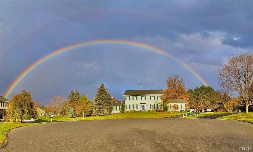 Delayed showings until 3/18/2026, at noon. Professional photographer coming 3/17/2026. Look for updated photos 3/18/2026. Welcome to 4881 Bentbrook Drive, a beautifully maintained 4-bedroom, 2.5-bath Colonial in the sought-after Enders Farm community of Manlius. Offering 2,708 square feet on a spacious .56-acre cul-de-sac lot, this home combines classic charm with thoughtful updates throughout. Highlights include a beautifully appointed kitchen with granite countertops, cherry cabinetry, prep sink, premium Monogram range, Bosch dishwasher, LG refrigerator, and built-in SubZero wine cooler, along with a luxurious primary bath featuring quartz finishes, glass shower, Kohler soaking tub, Italian ceramic tile, and Robern lighted mirrors. The dramatic family room offers cathedral ceilings, custom birch built-ins, skylights, and a remote-controlled gas fireplace. Outdoor features include an expanded deck with hot tub wiring, recent landscaping, a fenced dog run, and gorgeous sunset views. Enjoy added peace of mind with over $215,000 in capital improvements, reflecting the exceptional care and investment made throughout the years. Additional highlights include a finished basement providing additional square footage for a teen hangout and storage, whole-house Generac generator, extra-wide garage with Tesla charger, a new Carrier high-efficiency furnace, and an architectural roof with transferable warranty. Located in the Fayetteville-Manlius School District and within walking distance to all three schools, this is a rare opportunity in one of Manlius' most desirable neighborhoods.