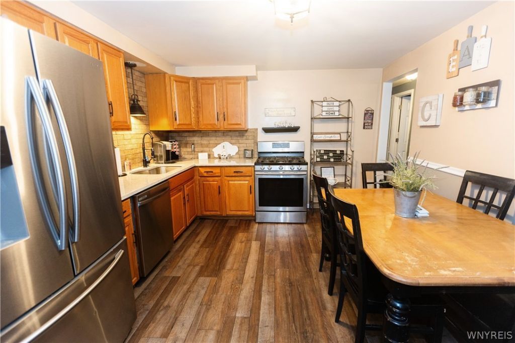 Welcome to this beautiful 4 bedroom, 2 full bath home on a quiet neighborhood street in the highly sought-after West Seneca Central School District with 1708 square feet! Offering a spacious layout, this home features both a comfortable living room and an expansive open family room - perfect for entertaining or relaxing with family. Most of the first floor has hardwood floors under the carpet and the updated eat-in kitchen showcases quartz countertops and includes all kitchen appliances, making it truly move-in ready.You'll love the bonus three-season room overlooking the fully fenced backyard - an ideal space to unwind. Step outside on the deck and enjoy a pool that's only 5 years young, just in time for summer gatherings. Showings and negotiations delayed until March 14th at Noon. Open house March 15th 1-3 More pictures coming soon!!