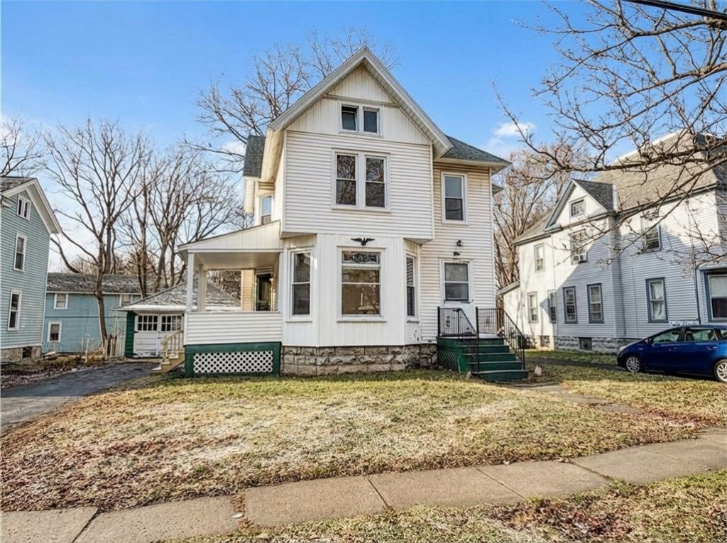 Discover the perfect blend of historic charm and modern updates in this 5 bedroom, 1.5 bath, 2276 sq ft. home built in the 1800s. This spacious property features soaring high ceilings, beautiful original woodwork, and stunning stained-glass windows that showcase the timeless craftsmanship of the era. Recent updates add comfort and convenience, including all new plumbing, new windows, new flooring throughout the first floor, and a fully renovated kitchen designed for today's lifestyle. The home also offers the practicality of second-floor laundry, walk in pantry and walk-in closet off of the primary bedroom making everyday living even easier. One thing you will notice is there is no lack of space. This property boasts five bedrooms and two generous living spaces on the first floor that provides flexibility to accommodate your daily needs. Having difficulty seeing how furniture will fit in a vacant property? Take a look at the virtually staged photos to show how the space can be utilized and designed to your own aesthetics. With distinctive character throughout and upgrades, this home provides a rare opportunity to own a charming property while enjoying thoughtful modern improvements. Don't miss your chance to make this property your own!